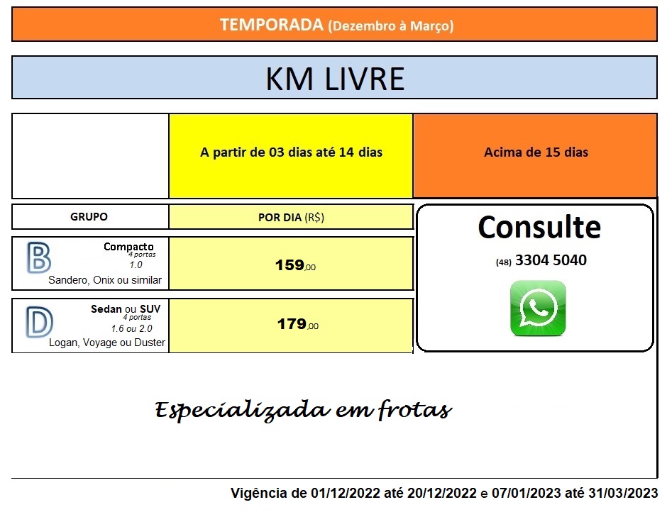 a opção de KM LIVRE, igual ou acima de 30 dias tem limite de Km, consulte os pacotes!